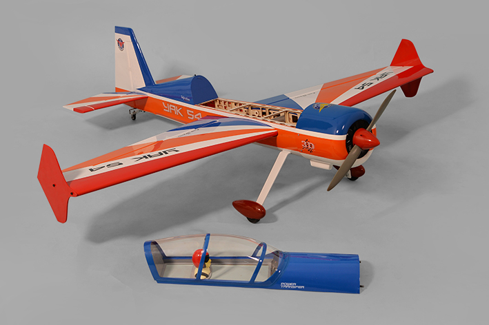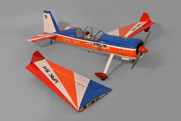 Um kit de escala lindamente construído à mão com desempenho robusto. Apresenta construção leve toda em balsa, capuz de fibra de vidro. O modelo básico é mais leve, o chassi foi redesenhado para ser rigido e resitente a torção. O Yak 54 é muito responsivo e muito rápido para seguir os comandos do piloto. Vem com acessórios completos. É praticamente todo montado, requer um minimo de trabalho para finalizar.  O Yak 54 é um ótimo avião muito bem feito e muito agradável de voar.